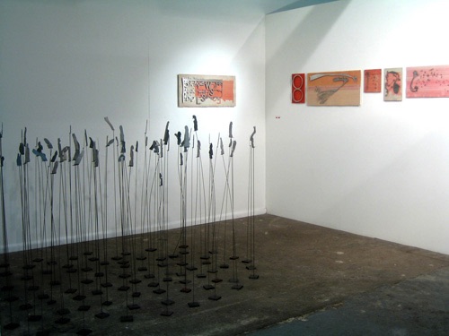 The work in the exhibition Pink Noise, pulls apart and rearranges the language and certainty used to describe bodies, primarily as male, female and heterosexual. She utilises humour, colour, scale, and the juxtaposition of paper and metal in her 2D and sculptural pieces.